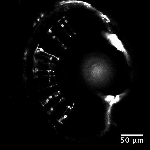 Bipolar cells in the retina of a zebrafish expressing the glutamate reporter iGluSnFR. These allow us to image individual vesicles released at active zones.